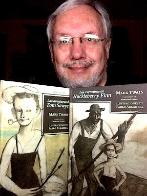 Gracias a la amabilidad de Lluisa Matarrodona, jefa de prensa de la editorial Sexto Piso, hace algunos meses llegó a mis manos una preciosa edición ilustrada y perfectamente encuadernada (es una preciosidad de libro) de la novela de Twain (completa, ya no condensada) y esta semana me mandó una edición igualmente hermosa de Las aventuras de Huckleberry Finn, del mismo autor y que nunca he leído (a pesar de que trengo una antigua edición de Bruguera).