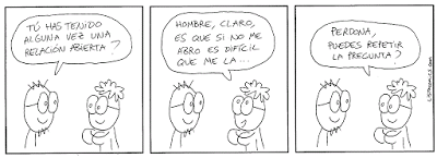 Limitar una relación abierta (o libre) a una mera cuestión sexual o a una licencia para acostarse con otros u otras es una perspectiva demasiado estrecha. La libertad en el amor va mucho más allá y tiene que ver con la plena realización de las personas, sin limitaciones, sin obstáculos. Enmarcar una relación de pareja dentro de la monogamia es válido, si ambas partes están de acuerdo. Pero si es sólo una la que quiere eso y se convierte en guardia y carcelera de la otra, eso deja de ser amor, así lo queramos justificar con frases como "es que la amo", "es que estoy enamorado de ella", "es que sin ella no puedo vivir". Egoísmo puro. Miserabilismo infame. Mezquindad extrema. El modo más absurdo y desgastante de vivir una relación.