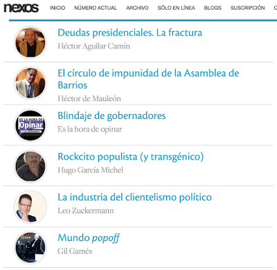 4. "Memorias de un melómano sarnoso" (recuerdos personales sobre la música). Una vez al mes en "Acordes y desacordes", el sitio de música de la revista Nexos.