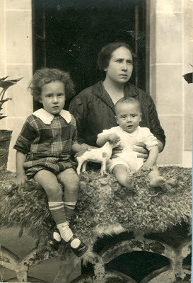 Una preciosa foto que calculo debe ser de 1925 o 26. Es en la casona de Mixcoac donde vivían mis abuelos, mi padre y sus hermanos antes de mudarse a la Quinta Guadalupe, en Tlalpan. Mi papá es el niño grande de cabellos chinos y mi tío Gustavo, el bebé que mi abuelita sostiene sobre la barda del corredor. Me pregunto si la foto la tomó mi abuelo o algún fotógrafo que contrataron.