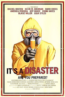 Una película extraña, peculiar, inquietante. Una cinta que en un principio parece tratar de un tema tan intrascendente como una reunión de parejas y que de pronto da un giro inesperado cuyo fondo es altamente dramático, fatal. Un filme que es una comedia, pero una comedia negrísima, cuyo humor no arranca la carcajada o la sonrisa, sino más bien risitas nerviosas.Estoy hablando de It's a Disaster de Todd Berger (2014), obra inusual y con cierta fascinación mórbida que de simple relato frívolo y clasemediero, pasa a formar parte del cine de desastre o de epidemias. Sabemos que afuera de esa confortable casa de un bello suburbio de Los Angeles un grupo terrorista inidentificado ha soltado algunas bombas de gas venenoso y que este llegará en algún momento a la casa donde conviven aquellos ocho amigos. Las reacciones que suceden a continuación es lo que hace más interesante la trama.