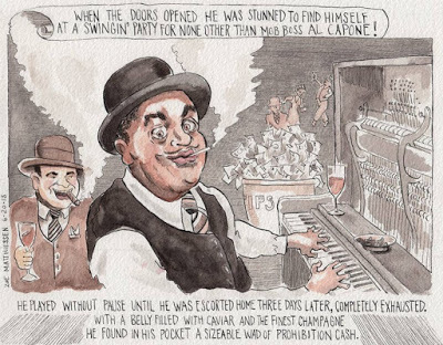 En 1926, a sus escasos veintiún años, ya era una figura muy popular en el jazz. En Nueva York era una estrella y en esos días, él y su orquesta realizaban una serie de presentaciones en el hotel Sherman de Chicago. Todo parecía ir sobre ruedas, hasta que al terminar una presentación, fue interceptado en los camerinos por unos matones que lo encañonaron amenazantes. Si les debía algo, no podía saberlo y tampoco se lo informaron. Le cubrieron la cara con un trapo, lo sacaron por la parte trasera del teatro, lo subieron a un coche y arrancaron con rumbo desconocido. No lo llevaron sin embargo a algún descampado para ejecutarlo. Cuando llegaron a su destino, lo metieron en el suntuoso centro nocturno East Cicero, le quitaron el trapo de la testa y en un vestuario le ordenaron que se acicalara. Tembloroso aún por los nervios, acató la instrucción y una vez listo, fue llevado al salón principal para que tomara asiento frente a un brillante piano e hiciera lo que sabía hacer. Todo era barullo en el lugar, hasta que puso sus manos sobre el teclado y comenzó a tocar un rítmico swing. Cuando su voz surgió, todos se volvieron a verlo y a aplaudirle. Se sintió aliviado y sonrío a sus anchas para cantar como sólo él sabía hacerlo, con esa alegría contagiosa que lo caracterizaba. Fue entonces que vio en la mesa más cercana a un sujeto bajito, con tipo de italiano, quien champaña en mano era el que más le aplaudía. Lo había visto en algunas fotografías de prensa y lo reconoció de inmediato. Un nuevo escalofrío lo recorrió de pies a cabeza, pero no permitió que se le notara. Aquel hombre de cabello envaselinado e impecable smoking blanco era nada menos que el capo mayor de la mafia de Chicago, a pesar de tener tan sólo veintisiete años de edad.Cuando el espectáculo terminó, el regordete músico de raza negra fue presentado al gangster, quien lo invitó a quedarse en la fiesta, misma que duraría tres días completos. Al final, recibió un fajo de dólares equivalente a lo que ganaba en un mes y fue conducido de regreso a su hotel. Fats Waller acababa de ser el regalo de cumpleaños de Al Capone.
