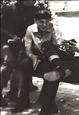 En esta foto de fines de 1969, aparezco a mis 14 años de edad, sentado en una banca del "Zócalo" de Tlalpan (es decir, del parque que está frente al edificio delegacional -hoy alcaldía-, los portales y la iglesia de San Agustín). En ese entonces, el centro de Tlalpan no era aún el Coyoacancito que es hoy. La foto debe ser de noviembre del 69. Justo el día 15 de ese mes y de ese año compuse mis dos primeras canciones. O sea que es mi foto más cercana a mis inicios en la composición musical. Y sí, ya tocaba la guitarra.