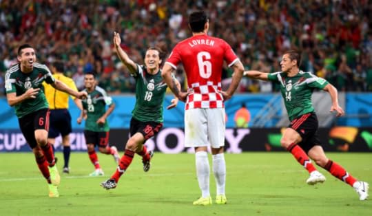 El festejo del gol de Andrés Guardado.Pues la volvió a hacer y lo hizo jugando muy bien, con autoridad, calidad y prestancia. Por sexta vez consecutiva desde 1994, la selección mexicana logró su pase a octavos de final, luego de vencer a los "temibles" croatas, quienes con toda su arrogancia habían declarado ayer que a los tricolores les iban a temblar las piernas y que tenían la receta para vencernos.El Piojo Herrera sigue demostrando que es un gran técnico y ha formado un grupo sólido y compacto que juega muy bien y que hoy tuvo la contundencia de la cual careció contra Brasil. Esta vez no se dependió tanto de Guillermo Ochoa (quien al final tuvo una parada estupenda) y el equipo se desplegó y abrió la cancha, sobre todo en el segundo tiempo, de una manera que los de Croacia no pudieron soportar.