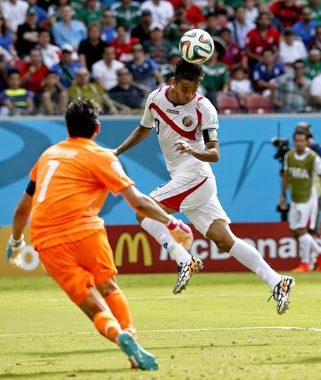 El gol del costarricense Bryan Ruiz.Lo de Costa Rica va más allá de la sorpresa. Cuando en el sorteo de diciembre, a los ticos les correspondió el grupo en el que estaban Uruguay, Inglaterra e Italia, es decir, tres campeones del mundo, todos los dimos por muertos. No les otorgamos la menor posibilidad de conseguir algo, ni siquiera un furtivo y milagroso empate. Pero he aquí que los centroamericanos arrancaron ganándole a los uruguayos con gran contundencia (tres a uno). "Fue una mala tarde de los charrúas", decían algunos. Sin embargo, Costa Rica refrendó hoy que lo de Uruguay no fue casualidad o flor de un día y se dio el lujo de derrotar, con todas las de la ley, nada menos que a la escuadra azzurra, la mismísima selección italiana que tan bien se había visto frente a los ingleses. En pocas palabras: los ticos vencieron ya a dos campeones mundiales y le quitaron toda posibilidad de calificar a otro, Inglaterra, equipo contra el cual jugarán en unos días. Una maravilla lo de los costarricenses.Por otro lado, Francia demostró que llegó a Brasil para hacer algo grande y goleó sin piedad al buen seleccionado de Suiza. Cinco goles a dos en una tarde llena de elegancia, prestancia, contundencia y magnífico juego de conjunto. Karim Benzema y compañía aún van a dar mucho de qué hablar.