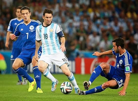 Messi entre tres bosnios.No fue lo que se esperaba. A pesar de la pléyade de jugadores que tiene en la parte de adelante, la selección de Argentina dejó mucho que desear en su partido contra la tozuda y sorda Bosnia-Herzegovina. Mínima victoria de dos a uno con un Lio Messi que sólo se hizo notar en su gol, mientras que otros jugadores de renombre brillaron, pero por su parsimonia y mediocridad.Mientras tanto, Francia dio fácil cuenta de una inofensiva Honduras (tres a cero) y Suiza derrotó a un decepcionante Ecuador (dos a uno). Ayer sábado, triunfos de Colombia sobre Grecia (un tres a cero fulminante), Costa de Marfil sobre Japón (dos a uno), Italia sobre Inglaterra (en un juegazo que terminó dos a uno, pero pudo ser para cualquiera de los dos) y la gran sorpresa: Uruguay 1-Costa Rica 3. ¡Bravísimo por los ticos! Ojalá se conserven igual.
