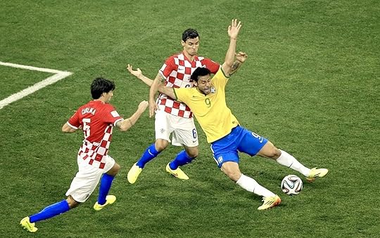 El penal inventado.Me saltaré la ceremonia de inauguración porque no la quise ver (en general siempre resulta aburridísima esta clase de cosas) y porque, por lo que he sabido, estuvo del nabo. Mejor me refiero al partido con el cual inició el campeonato y que enfrentó a la selección anfitriona, Brasil, con el duro equipo de Croacia.Partido de resultado engañoso, porque los croatas fueron mejores y de no ser por los errores del árbitro japonés (quien le regaló un penalty a los cariocas) y del portero balcánico (quien se tragó un tiro de Neymar que nada llevaba), muy posiblemente las cosas habrían sido muy distintas. No sé si a Croacia le hubiera alcanzado para ganar, pero creo que un empate hubiese sido lo más justo.