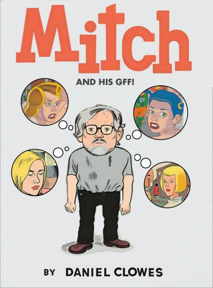 Primero me fui con la finta. Eduardo Salgado, ilustrador de Milenio y la Mosca me la hizo llegar por facebook y pensé que realmente era obra de Daniel Clowes y que se trataba de una extraordinaria casualidad, de una delirante coincidencia. "Mitch and his girlfriends!". Me hizo mucha gracia y la descargué con gusto. Luego, el propio Eduardo me dijo algo que al principio no entendí bien: que se la había pasado un colega suyo, Ric Reyes, y que éste había pensado que yo me molestaría. No me quedó claro por qué debía molestarme, hasta que me enteré de que en realidad Reyes era quien había elaborado la ilustración por medio de photo shop y que su idea era la de hacerme una especie de crítica, pues por extrañas razones le saca de onda que yo escriba sobre las amigas que me visitan y que me tome fotos con ellas. La cosa me pareció tan extravagante y absurda que me dio más risa aún. Pero así está la cosa. De todos modos, el dibujo de Mitch -que sí, soy yo- me resulta sensacional y se la agradezco a Ric de todo corazón, aunque me haya aceptado como amigo del feis tan rápido como me desaceptó y me dio de baja. Un episodio realmente surreal.