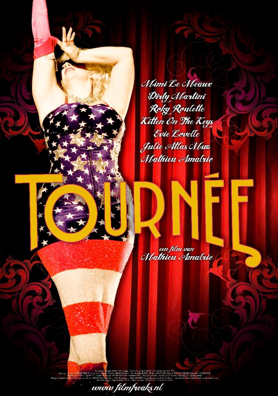 Vi en Mubi una estupenda película francesa: Tournée, dirigida por Mathieu Amalric en 2010. Amalric es también guionista y actor principal de la cinta. Su personaje es el de un empresario teatral que lleva de los Estados Unidos a Francia un espectáculo de new burlesque, para realizar una gira (una tournée) por diferentes ciudades del país galo, con la idea de culminar en París.Casi como si se tratara de un documental, el filme nos lleva por los entretelones de la compañía artística, cuyas estrellas son cinco o seis mujeres estadounidenses ya veteranas, en su mayor parte pasadas de años y de carnes, pero con un encanto y una cachondería sin iguales. Las relaciones que se van dando, los problemas personales de cada uno de los integrantes de la troupé (en especial de Joachim Zand, el personaje interpretado por Amalric), los ensayos, las presentaciones, todo está tratado con gran elegancia y buen gusto, sin caer jamás en lo grotesco.