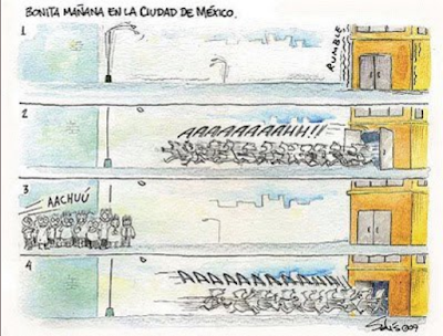 Una imagen que describe a la perfección lo que vivimos hoy martes en este ex Distrito Federal que a su miedo más típico, el de los temblores de tierra, ha sumado en estos meses el miedo a la pandemia del coronavirus que nos mantiene confinados en nuestras casas.Esta caricatura lo expresa mejor que nadie.