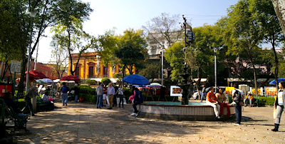Luego de algún tiempo de no vernos, hoy comimos juntos en un restaurante bastante carito de San Ángel. Fue un gusto vernos y ponernos al día. Varios cambios en su vida. Luego de comer, dimos un paseíto muy agradable por el jardín de San Jacinto y otros rincones hermosos del antiguo pueblo. Llegamos hasta un local de artesanías que está en el mismo lugar en donde, cuando yo era niño, había una tienda de mascotas ("la tienda de animales", le decíamos mis hermanos y yo). Me fascinaba que mis papás nos llevaran a ver los perritos, gatitos, las aves y algunos animales más o menos exóticos que ahí se vendían. Hoym como dije, venden artesanía fina a precios exorbitantes. Tienen por cierto un cocodrilo de madera gigante, casi tamaño natural, de una belleza fantástica. Pregunte el precio: ¡200 mil pesos! Qué locura.Pero me encantó ver a Pau.