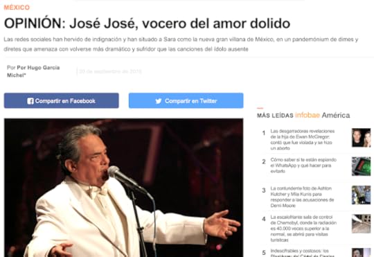 Porque eso fue José José: un ídolo popular, quizás el último ídolo musical que quedaba en México luego de la muerte de Juan Gabriel, y eso fueron las letras que interpretaba: una loa al sufrimiento amoroso, una celebración del dolor emocional, un canto paradójicamente jubiloso y hasta orgulloso al fracaso y la amargura. Y con eso se identificaron los millones de personas que hoy lloran su partida. Porque hay quien dice que todo mexicano que se embriague hasta el punto del llanto y la vulnerabilidad terminará por cantar alguna canción de José José. En especial si sufre eso que algunos llaman el mal de amores.
