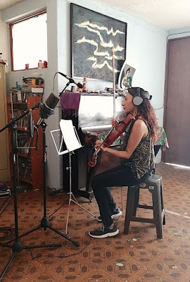 Sesión vespertina con la talentosa y linda Jazmín Rivera, quien llegó al estudio acompañada por su inseparable novio y acompañante musical George. Fue una muy buena sesión y ya quedó listo el arreglo de cuerdas de "Amanecer", la canción que cantamos Iris y yo y en la que también intervienen María Emilia Martínez (flauta), Aarón Cruz (contrabajo), Aura Ortiz (bajo), Jehová (guitarra 1), Ernesto (piano) y yo también con la segunda guitarra. No hay percusiones. A pesar del paso lento, mi disco va seguro y cada vez más cercano a las etapas finales.