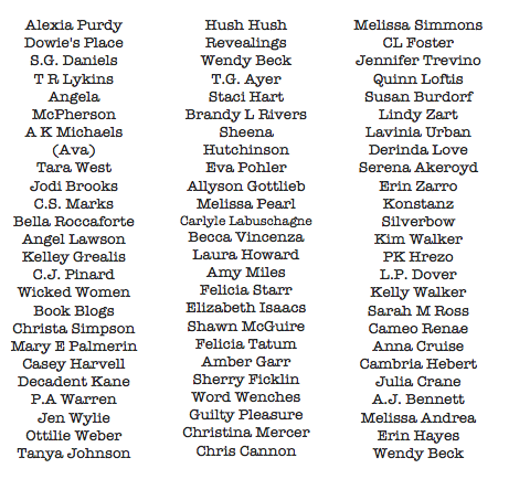 Here are the authors, bloggers and #1 fans that are participating: