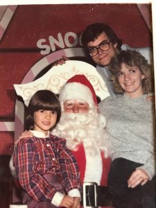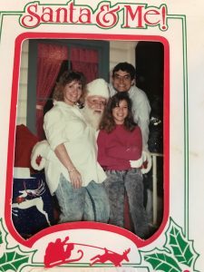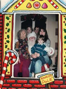 The second thing we do differently every year is that the whole family and anyone visiting will meet up at the mall and have Santa pictures taken. I have pictures of my mom, my dad, even my grandmother sitting on Santa’s lap.