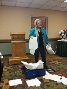 Here I am giving my Deep Point of View workshop. Believe it or not, those are just some of the rejection notices that I received over the years. And that suitcase if full! But I loved standing up there helping other writers understand how to go deep into a character’s point of view to make their stories more complex and interesting. But I also got to make everyone laugh, too!