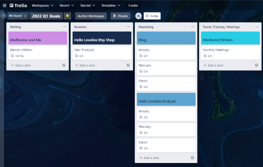 Here we are back at the Kanban-style Trello Board. If you’ve been here a while, you’ll already be familiar with this, but for those that aren’t, I use Trello as a digital sort of Kanban board. I still have categories for my tasks, but I don’t use the “to do, doing, done” modifiers. They all just stay on their lists and I modify the cards within them ...