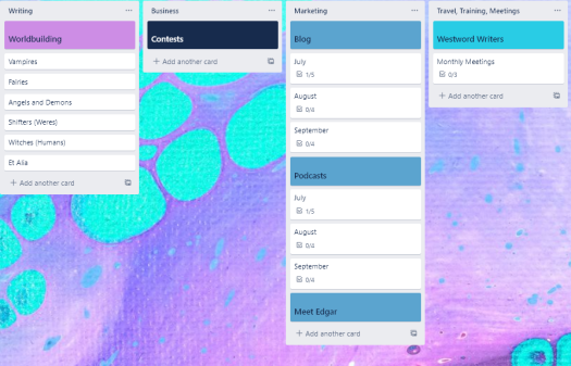 Here we are back at the Kanban-style Trello Board. If you’ve been here a while, you’ll already be familiar with this, but for those that aren’t, I use Trello as a digital sort of Kanban board. I still have categories for my tasks, but I don’t use the “to do, doing, done” modifiers. They all just stay on their lists and I modify the cards within them ...