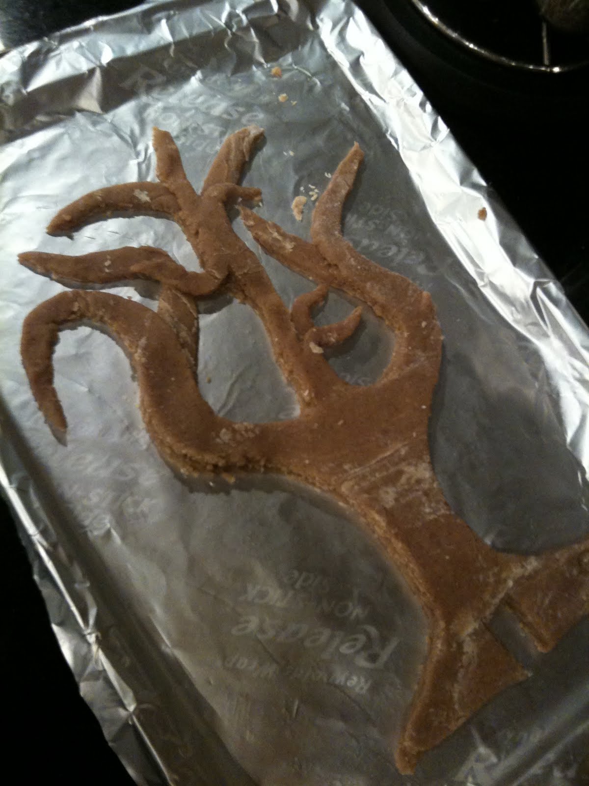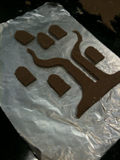 Above are the two parts of the 3-D puzzle tree (plus tombstones) before they were baked.
