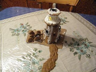 Hannah sent in this gingerbread lighthouse, which wins the "Most Unique" category. Love the spiders, and the lighthouse actually lights up!