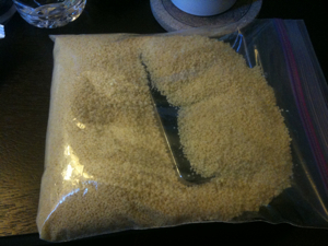 Here is a picture of my phone, entombed in a Ziplock bag of uncooked couscous.