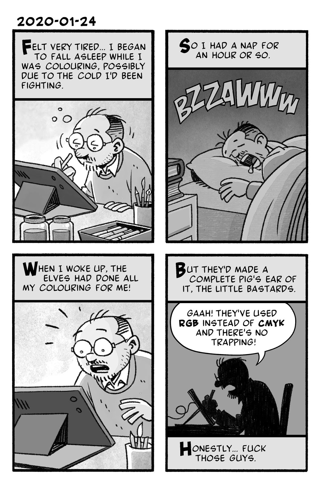 The last batch of my Patreon daily strips in this format - after this I switch to a more social media-friendly format (i.e. square) and start posting them on my (just-started-using-it-for-the-first-time) Instagram page, which you can find here.