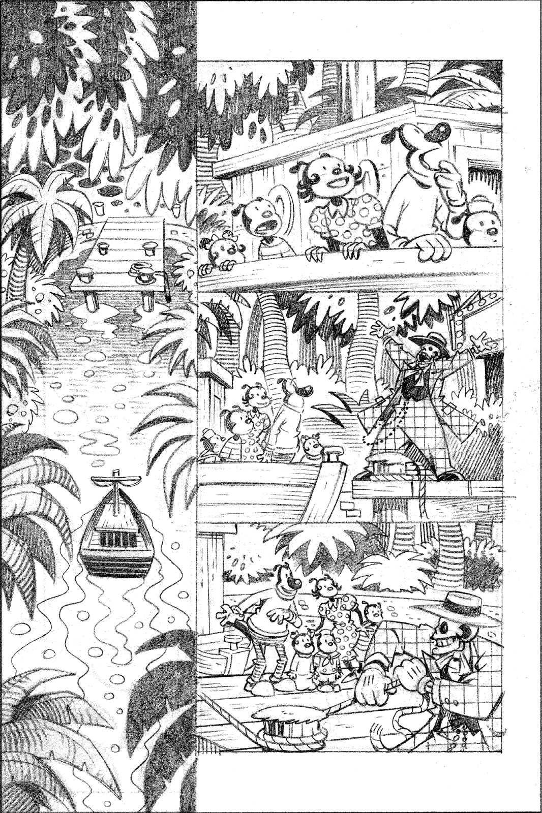 It looks a bit strange, I'm afraid. This is because I was travelling around New Zealand at the time the story was due; my daughter had just been born and we were visiting my family there. In those pre-broadband, pre-WiFi days, that meant I needed to create very small digital files so I could e-mail them from an internet café, and the best way to create artwork with a really tiny file size was to use vector art. So I created the whole thing in Adobe Illustrator on my laptop, and never really got to grips with it. As a consequence, it's piggin' ugly. Consequently, this will be your last chance to see it until Spike's 200th anniversary.