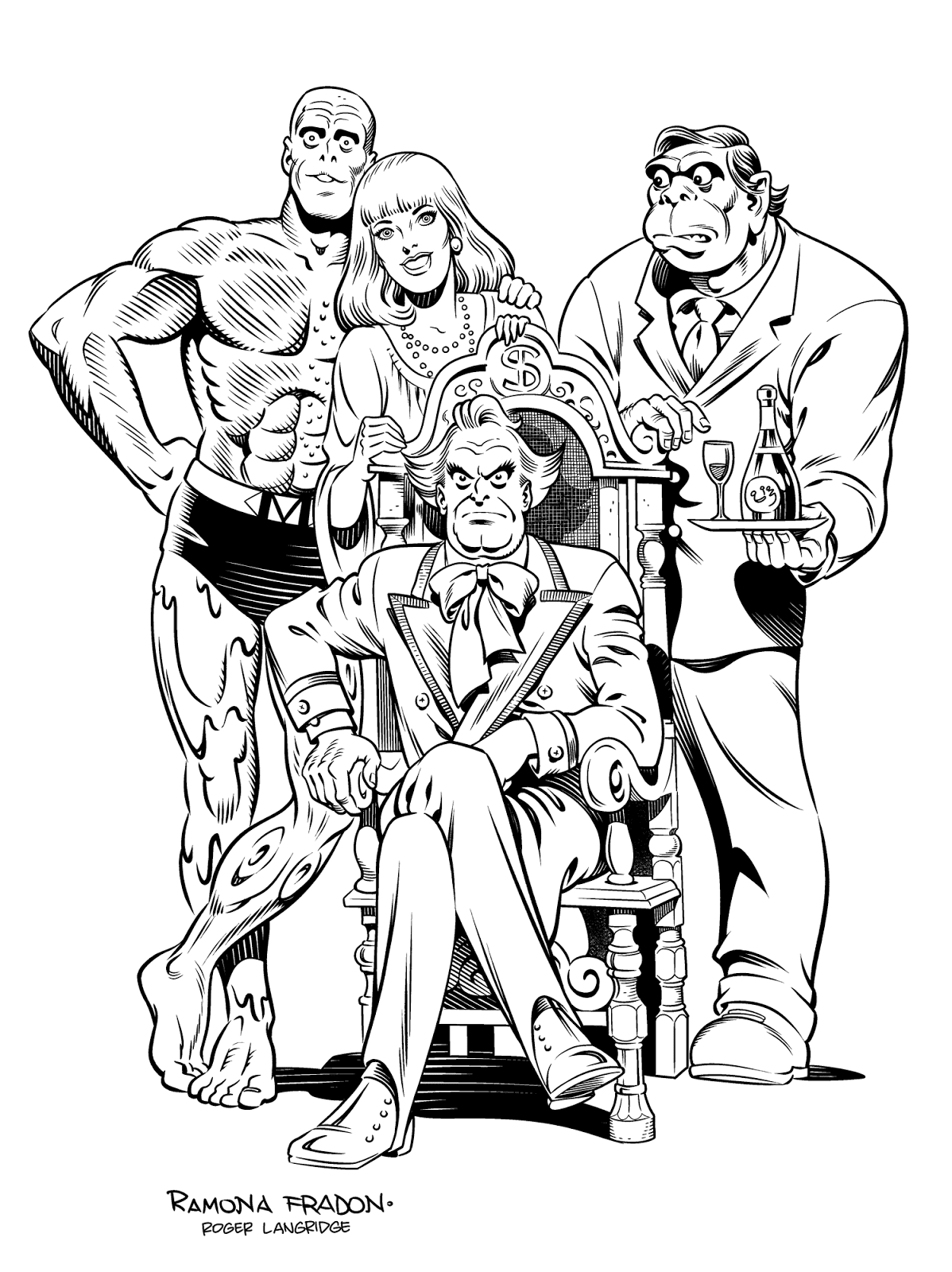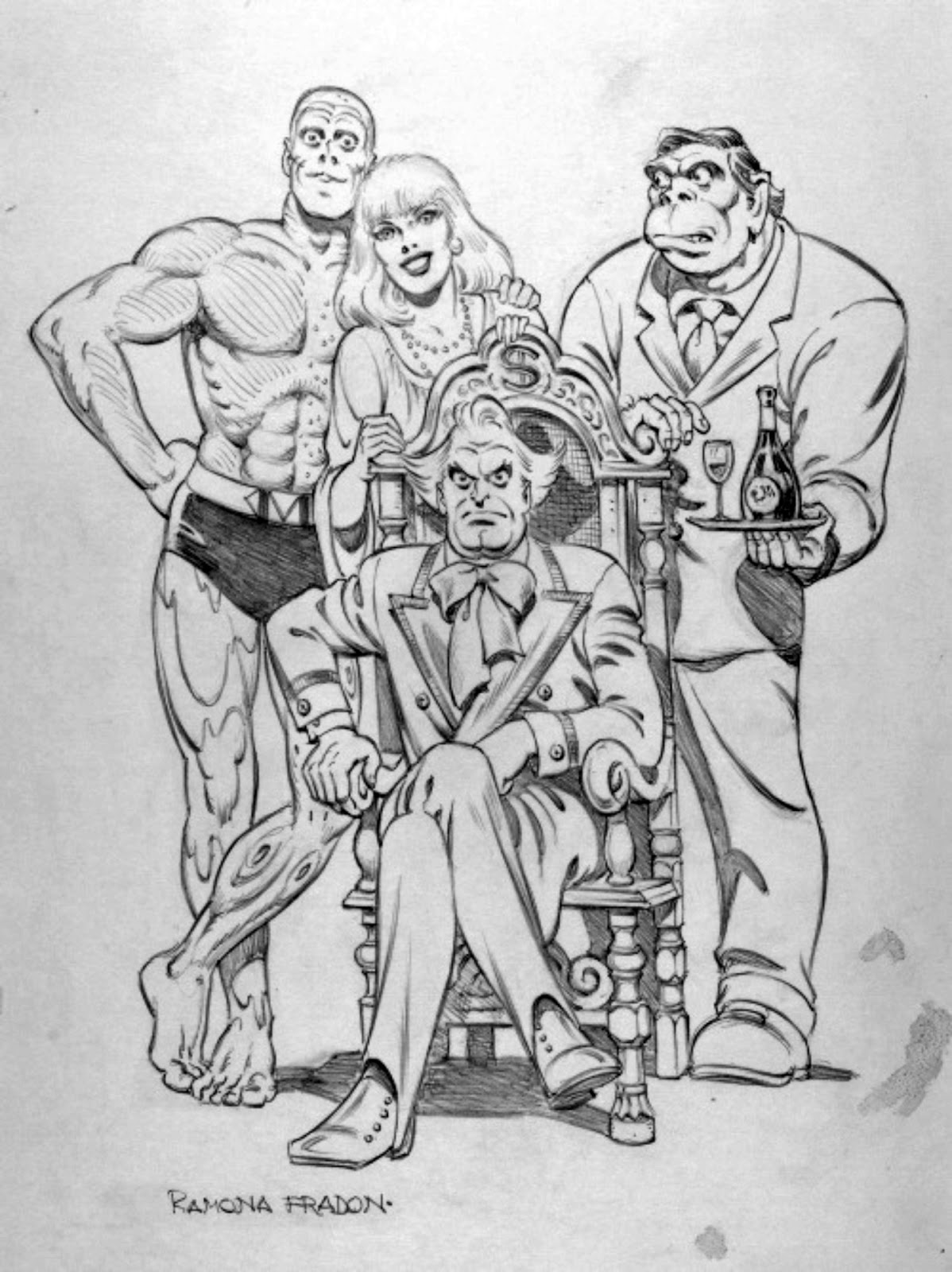 Here's a Ramona Fradon Metamorpho drawing I found on the internet, which I inked for fun last year. (Fradon is one of my top five all-time favourite superhero artists, and has been since I was a kid.) Original pencils and my inks posted together for comparison.