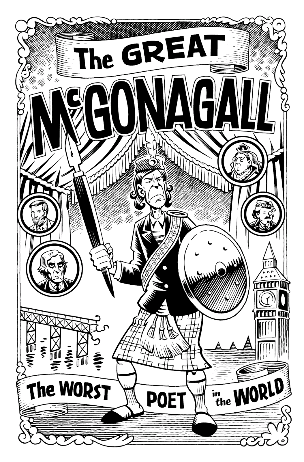 McGonagall is a fascinating figure, despite (or perhaps because of) his total absence of talent. I've been thinking about doing a comic about him for some time, as his "theatrical loser" persona ticks a lot of boxes for me. Should be fun.
