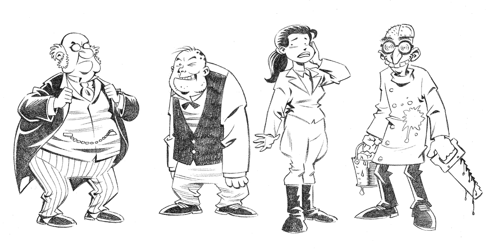 Here are a couple of glimpses at the style tests I did for the new Fred book (now one-third pencilled, folks!) Just had an e-mail, not half an hour ago, about an online serialisation opportunity, to start sooner rather than later (tease, tease!). Watch this space...