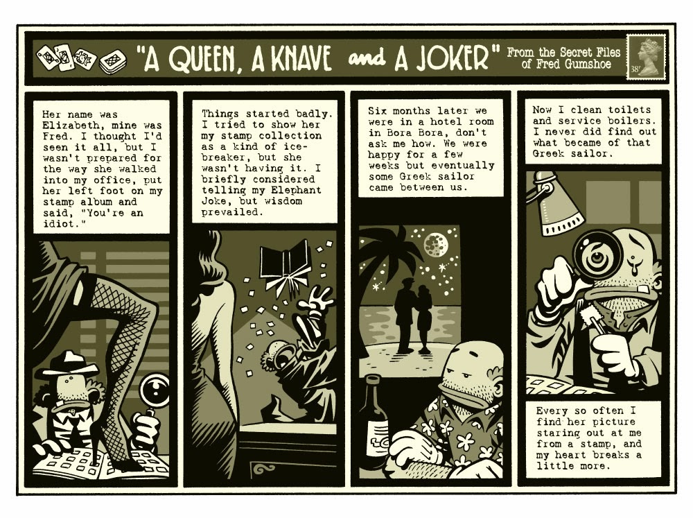 I ended up recycling this strip in a Mugwhump the Great story, hence its exclusion from any Fred collections. Brian Ralph told me he uses it in his cartooning classes, which flattered the hell out of me.