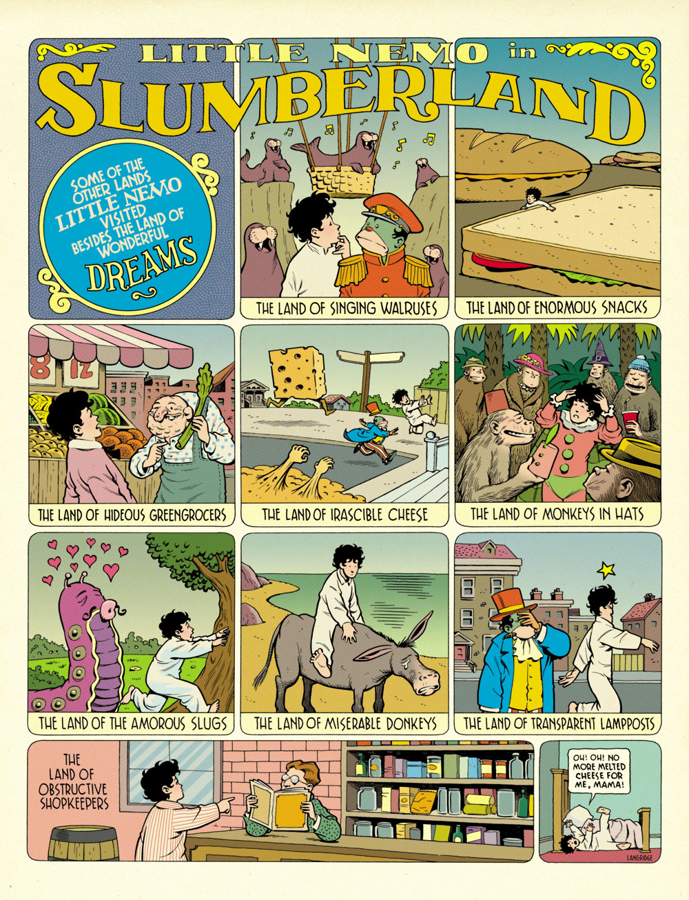 This has been formally announced now, and it looks like they're using my page as the illustration accompanying the news item, so I guess it's okay to post it here: I'm one of the contributors to Little Nemo: Dream Another Dream, a new anthology where various contemporary cartoonists offer their own interpretations of Winsor McCay's great, great comic strip, Little Nemo in Slumberland. There's more bumf about it here.