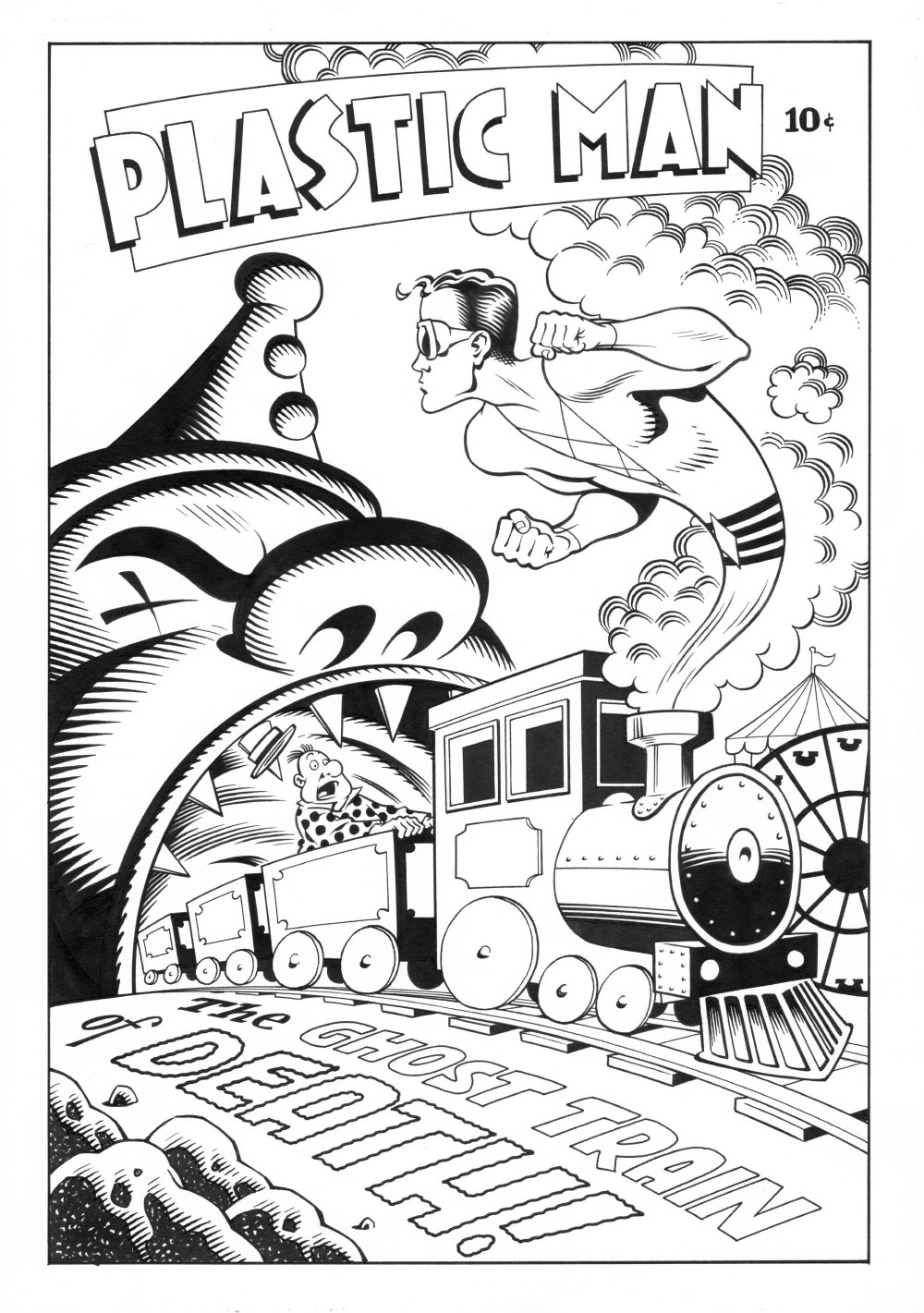 And here's some Plastic Man. Somewhat in the style of a 1940s Jack Cole cover, or at least that's the intention.