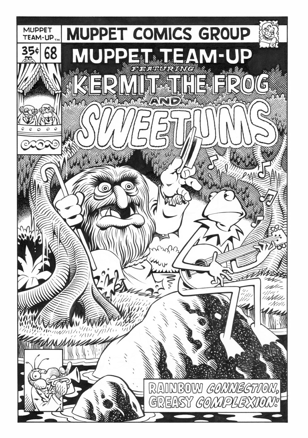 This is another commission. The brief was to do my own take on this old Marvel Team-Up cover, only with Muppets instead of the Marvel characters. So here's what I came up with.