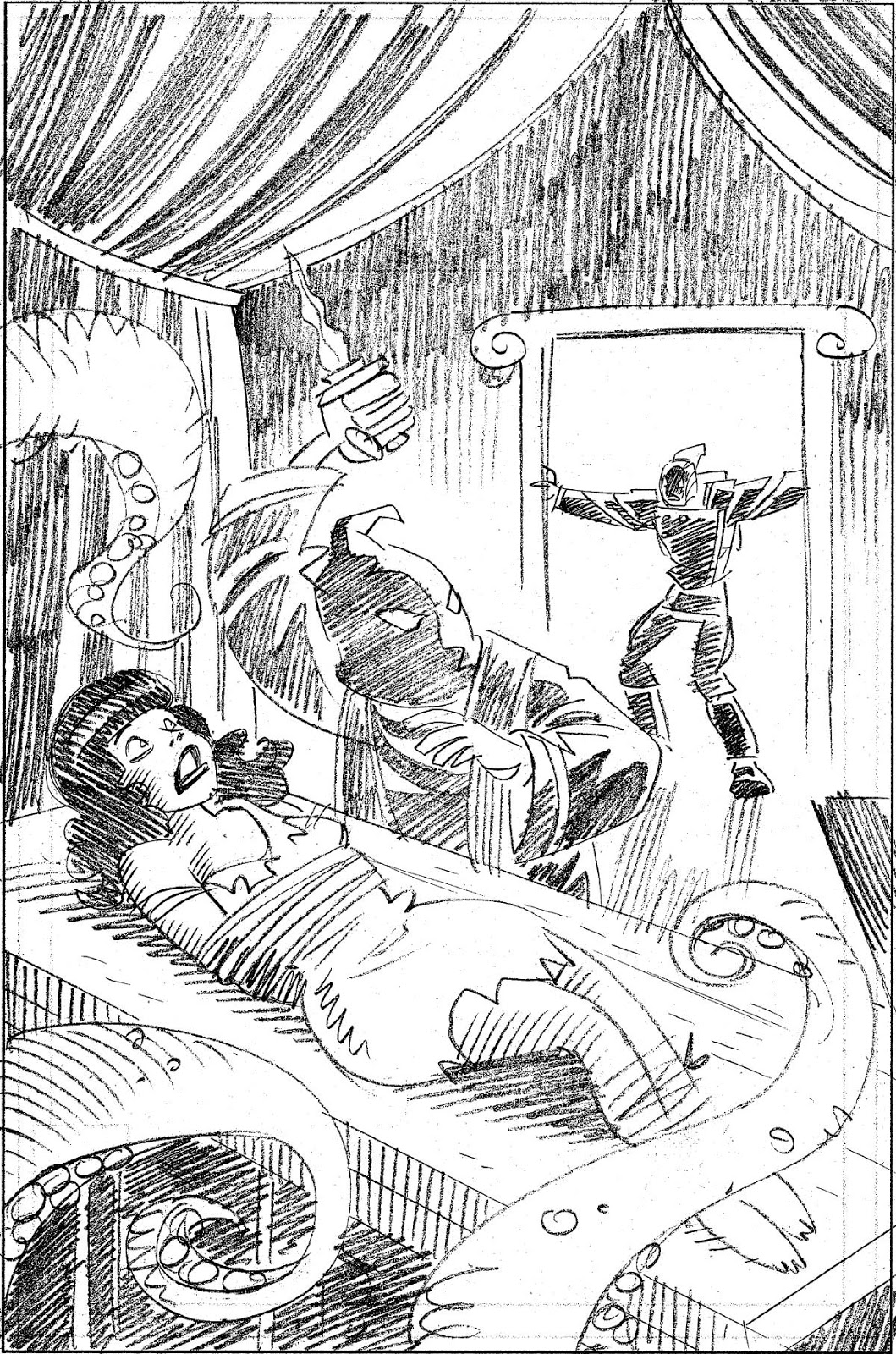 Here are some of the cover roughs I did as ideas for our regular cover guy, the incredible Walter Simonson, to spring off from.