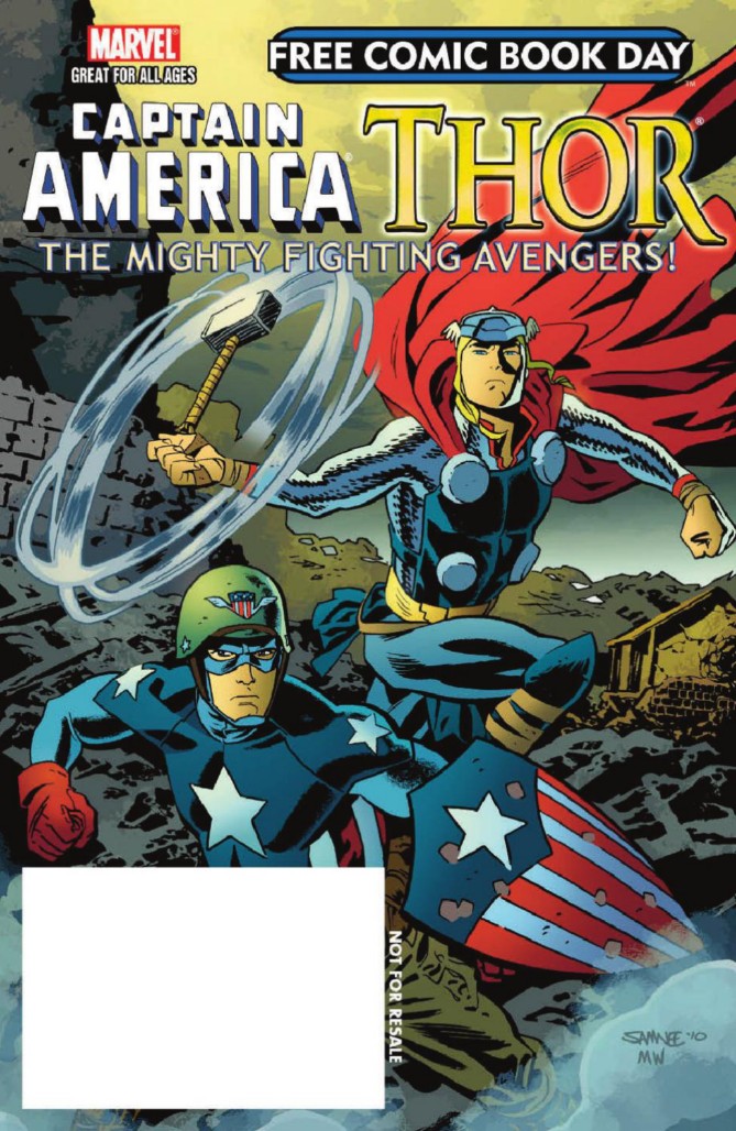 I'm not responsible for the jaw-breaking title, but the rest of the words are mine; the pictures are by the marvellous Chris Samnee and Matthew Wilson. Basically, it's the Thor: The Mighty Avenger team reunited one more time. I honestly don't know if FCBD is observed outside the USA and Canada, but if you're fortunate enough to live near a participating store, why not head out and pick one up - and spend a few dollars while you're there, why don'tcha?