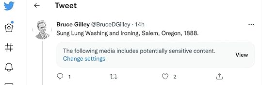 RT by @BruceDGilley: To twitter "potentially sensitive" but in reality it looks like a historic photo of an actual 19th century Asian business in #Oregon . It is actual censorship of history.