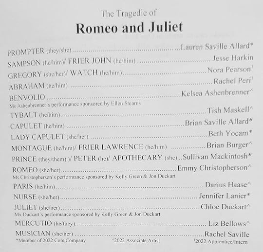 Portland Shakespeare by http://opsfest.org with gender-delusional cast and characters, so confusing that even the actors kept correcting their pronouns in the middle of the play. Should be called "The Farce of Romeo and Juliet"