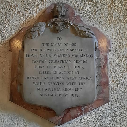 Serendipitous discovery at Holy Trinity Church in Sloane Square: one of the British from Nigeria who died fighting the Germans in Cameroons in WWI. Sir Alan Burns fought there too but was sent back to Lagos to organize recruitment. Most of his regiment die