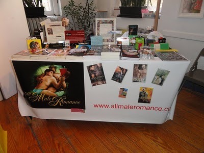 I went with All Male Romance, a group of 25 M/M romance writers whose goal is to support and encourage writers and readers of our little niche, and hopefully help to make it a not-so-little niche in the years to come. (Special thanks to the AMR team, btw, from whom I've gacked all these photos.)