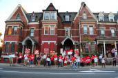 On September 5, there was a march in Springfield to protest banks that are forcing poor people out of their homes while paying their executives millions of dollars a year. The first photo shows some of the marchers in front of a building at the corner of Maple and Central streets. The march was organized by the same group that organized a rally on July 31 that drew more than 200 people.