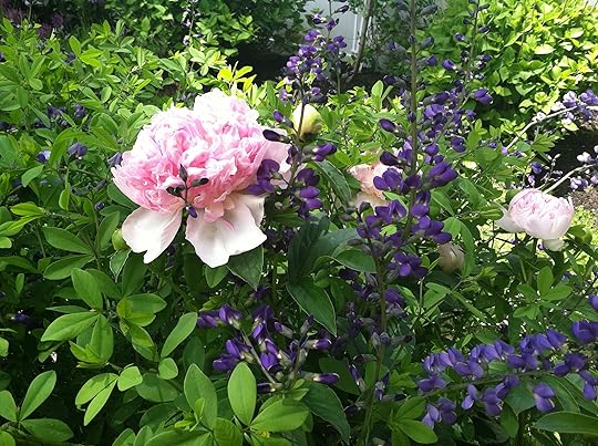Can you bear just one more garden photo? For me? It's so rare for everything in the yard to be blooming at the same time — either the roses have been eaten by the aphids, or the lavender has keeled over and died — that I'm really enjoying this week. My husband jokes that if I could, I'd plant the same five plants over and over again. But I LIKE them. And when they all play nice together, it's a glorious thing. Unfortunately, it only lasts for about 30 seconds in New England. But I'm pretending it will last all summer, and that the blue birds currently checking out the house will stay, and that the hummingbirds will hang around too. This is why I write fiction.