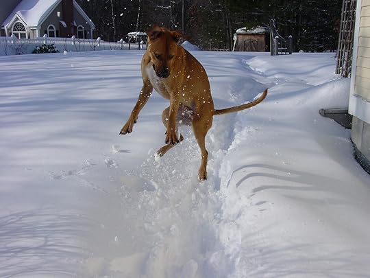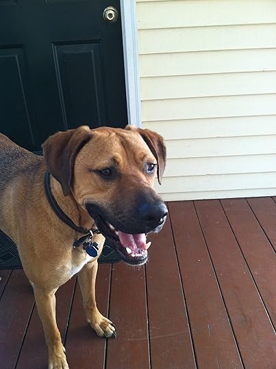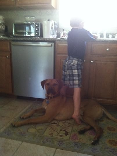 His best trait, however, is the fact that he loves kids. Mostly mine, but if they aren't available, he's fine with whoever happens to leave theirs laying around. He is never happier than when there's a pack of children over and he's in the middle, tongue out, running hard alongside them in a game of tag or ball. The kids use him to find each other during hide and seek, and as a shield during water pistol wars.