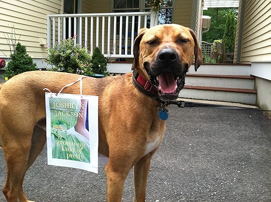 So, I decided to try renting Harley out, like billboard space. I'm doing a test case with Backseat Saints and Jackson's not-yet-released next book, A Grown-Up Kind of Pretty. On our daily three-mile jog we must pass at least … I dunno, fifty houses? Maybe more. Plus cars and whatnot. And that's just here. Sometimes we humiliate the poor dog by taking him for walks in other places, too.