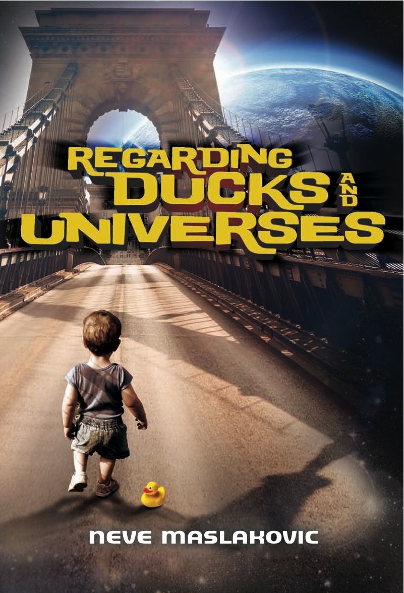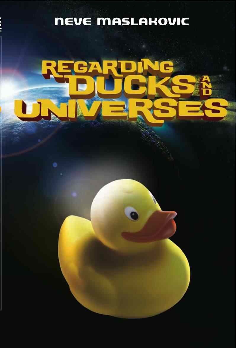 I had gotten quite fond of the big, perky, yellow duck that squats on the cover of the Advance Reader's Copy of Regarding Ducks and Universes. However, the book's publisher, the good folks over at AmazonEncore, after some consideration, suggested that that cover felt "unfinished" and "didn't reflect the depth of the book." So they sent me a pdf file of a new one. What did I think?