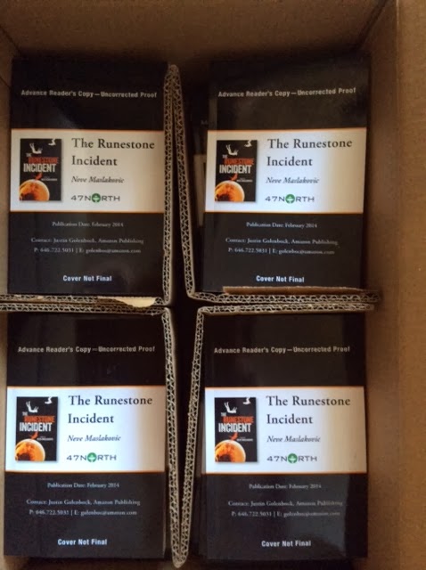 Hope everyone is having a merry and relaxing holiday season. Look what landed on my doorstep, like a Christmas present from my publisher -- the advance copies of The Runestone Incident (Book 2 of the Incident series)! Here are the ARCs, looking all snug in their box: