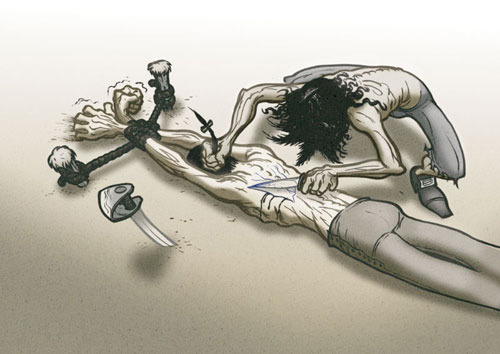 Køb bogen, for hulen, der er bang for your buck, men kan du ikke vente er her en håndfuld tegninger og citater fra Djævelens øjne (klik på dem for at se dem i stort format):
