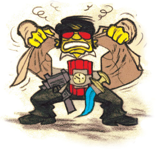 Illustrationer fra ‘Suicide Joe vs. Dead Tree Press’, kan snart læses i Kolor Klimax, som altså udkommer i denne weekend. Læs mere her.