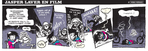 Mit tredje Politiken-indslag er netop begyndt! Det første var som bekendt ‘True Story’, som udkommer samlet i en prægtig bogudgivelse ved navn Det sidste ord den 1. marts, det andet var striben om Jasper, der lavede en film, hvor Jasper desværre blev dræbt af et vådeskud i Politikens hus. Men nu er Ekstramateriale i gang i stedet, og det er en superskøn opgave. Der er tale om formidling af bizarre eller glemte fænomener fra filmhistorien, og første indslag beretter således om den sære og grinagtige historie om instruktør-pseudonymet ‘Alan Smithee’. Det var i avisen i går, men skal du en tur i biffen i vinterferien, så kig efter Politikens Film-sektion, som ligger gratis i landets biografer.