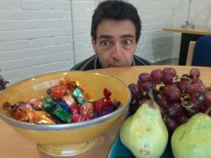 Above is a picture I took, and Tweeted, at work on Wednesday morning. The accompanying caption was something like, “Oh no! They’ve put me in a writing room that contains Quality Streets! How am I supposed to get any writing done?” It was true. “They” had. And I thought it would make a funny picture. “They” are my management company, Avalon, whose offices are far, far away in West London, otherwise I might exploit them for a luxuriously-appointed writing space more often. (Not all of their offices are luxurious. One they put me in didn’t even have a plug socket. Another was out of range of the company’s own in-house wi-fi.) As it was, I had pencilled in two half-days of intensive writing with my friend Simon Day, which could not be accomplished in the quiet of the British Library, so we went legit and got a room.